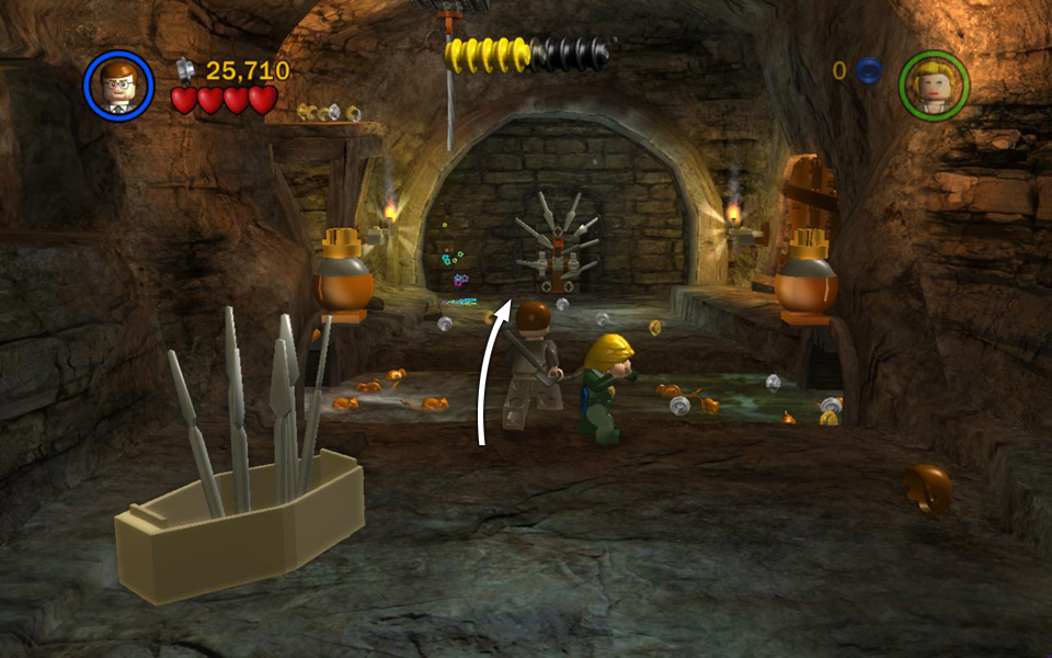FREE PLAY: Throughout this area there are various alcoves with silver bars. If you have a character with explosives you can destroy these to get extra studs. A couple of these alcoves also require a female character's jumping ability to reach.