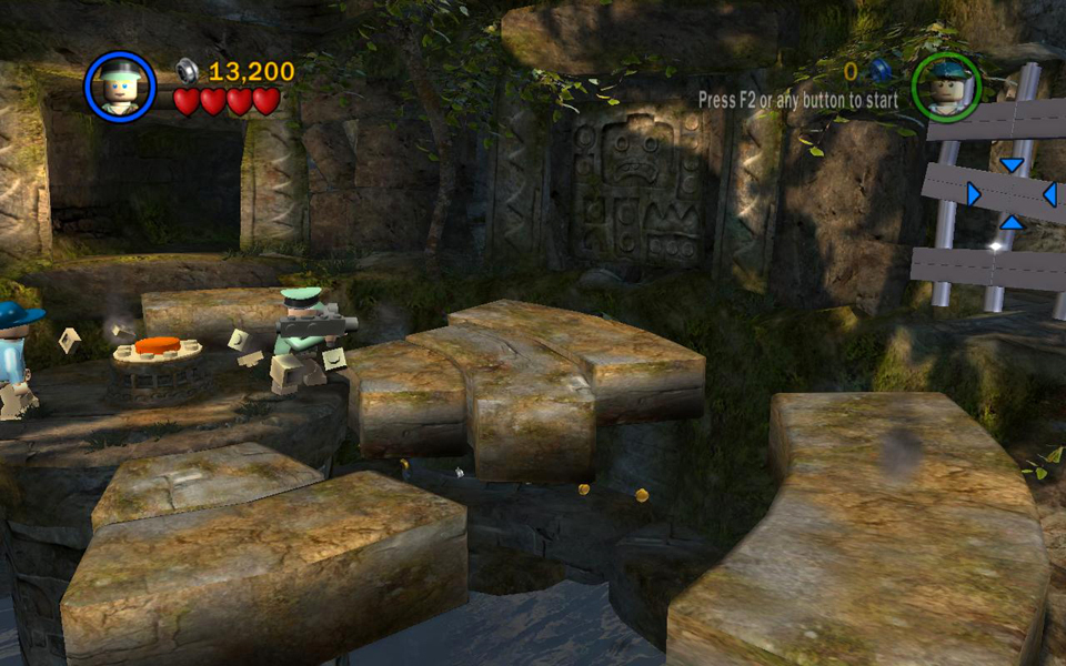 NOTE: If you have Adaptive Difficulty turned ON in the Extras menu, and you mess up this run several times, the game will automatically place Indy and Satipo outside the tunnel, preventing you from getting the artifact. If you turn Adaptive Difficulty OFF when you replay, your character may die and lose some studs in the process, but you'll be able to try the run as many times as you want.
