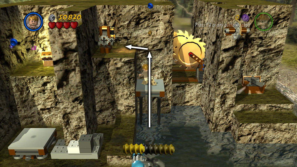 LEVEL ENTRANCE: The entrance to this level is located on the road near the Super Bonus Level entrance, between the Army Jeep and the crashed airplane. You'll need Indiana Jones to get inside. Use Indy's whip to grab the LEGO statue head on the right side of the decorative archway. Place the head on the small green plate on the left side of the archway. This lowers the spikes so you can enter. (Check the Hub Maps and Bonus Level intro if you need visuals for this.)